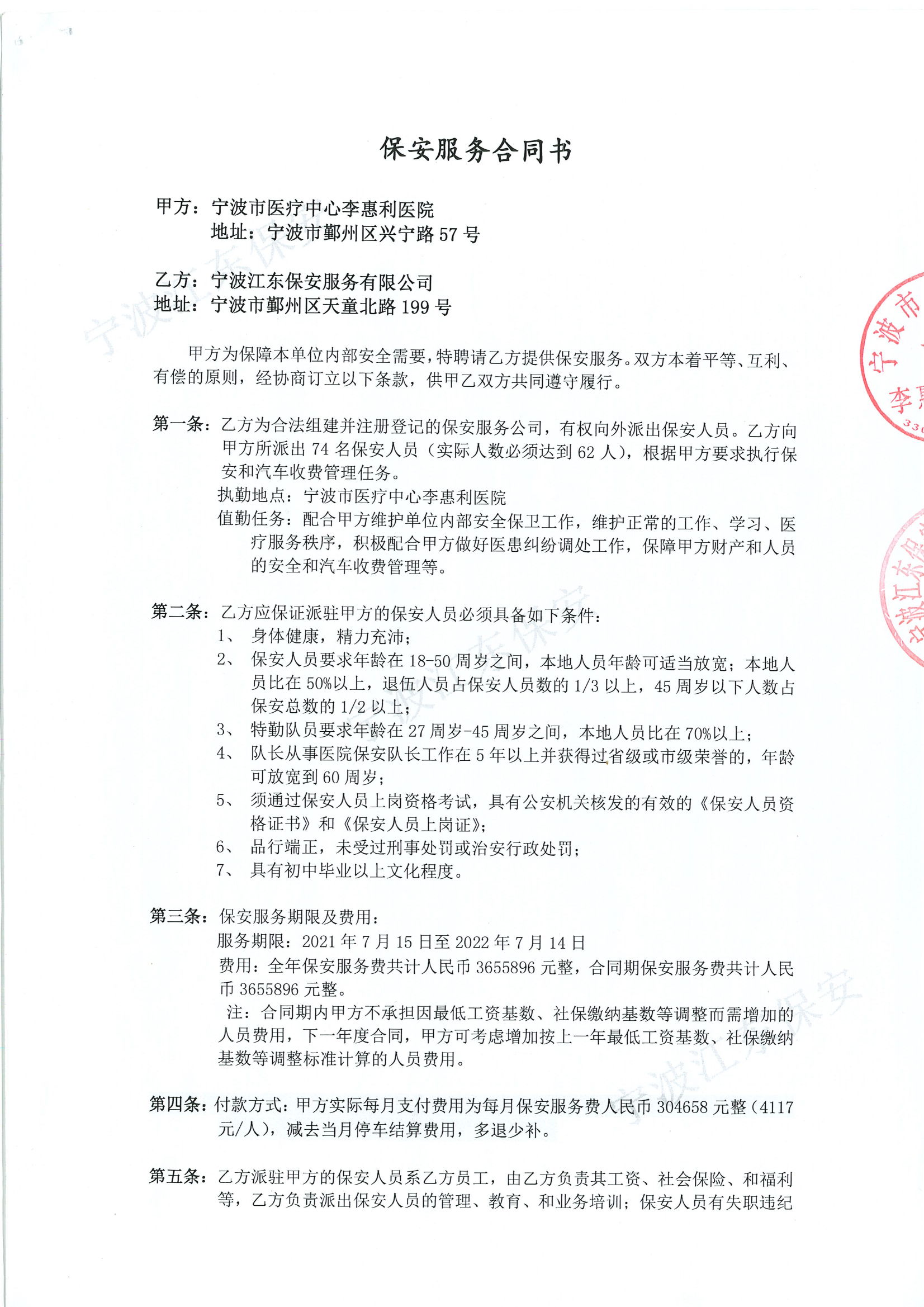 合并前的原江東保安服務(wù)公司承接了寧波市醫(yī)療中心李惠麗醫(yī)院的保安業(yè)務(wù),在多年的合作中,我公司服從醫(yī)院領(lǐng)導(dǎo)交給的各項(xiàng)任務(wù),嚴(yán)格履行崗位職責(zé),做好本職工作,得到了業(yè)務(wù)單位及上級(jí)管理部門(mén)的認(rèn)可。我公司將在今后的合作中繼續(xù)秉承“誠(chéng)實(shí)守信,客戶(hù)至上,以人為本,致精致誠(chéng)”的服務(wù)理念,始終為客戶(hù)提供高質(zhì)量、全方位、專(zhuān)業(yè)化的安保服務(wù)。