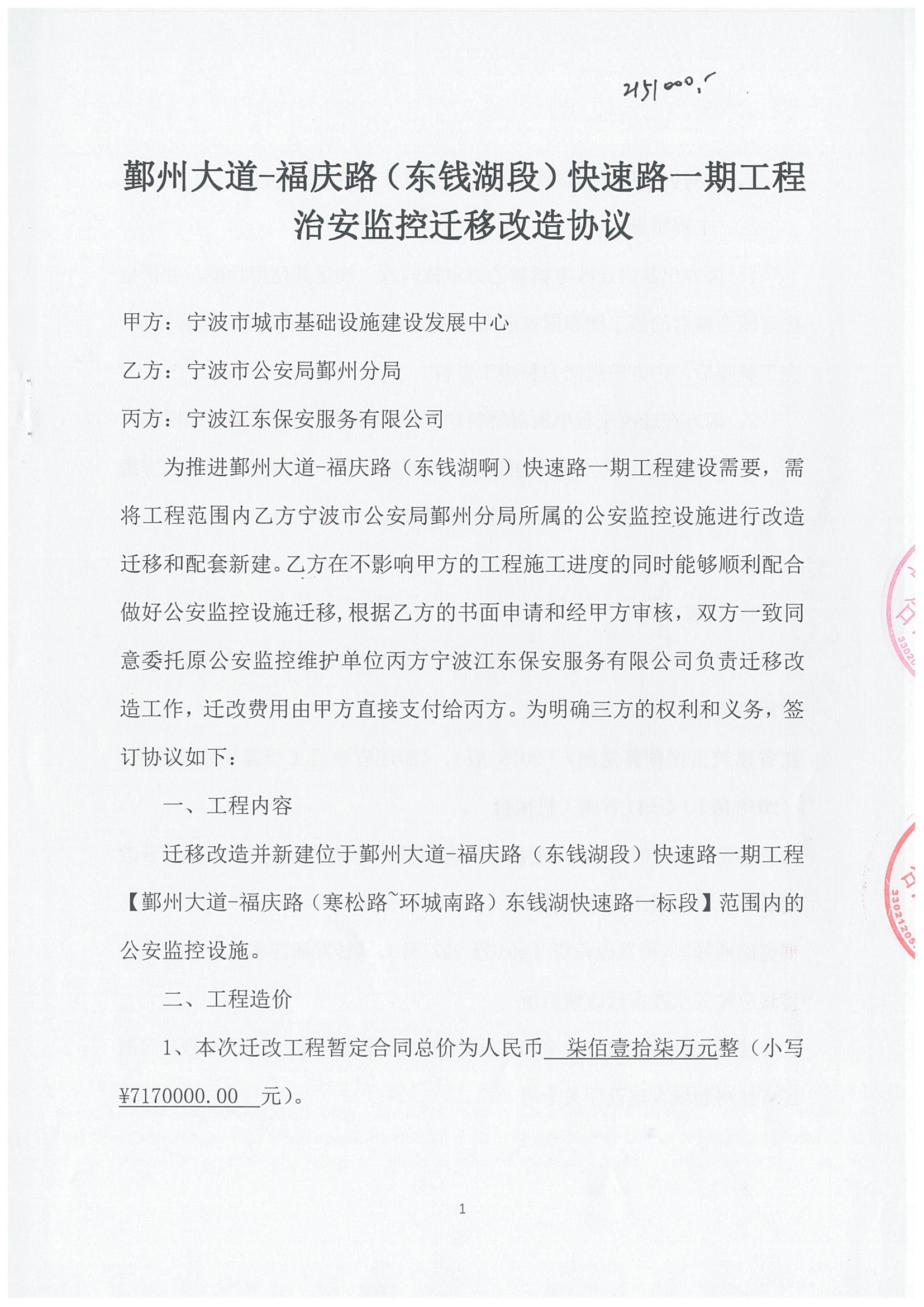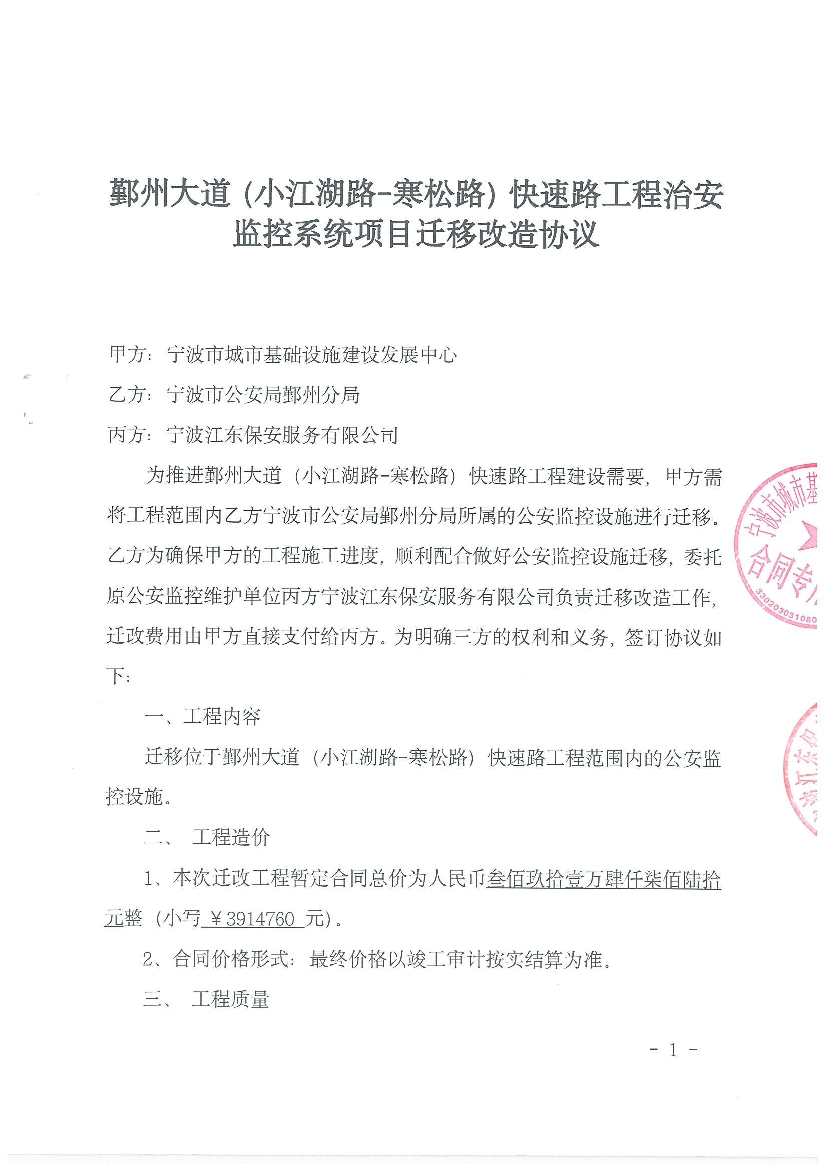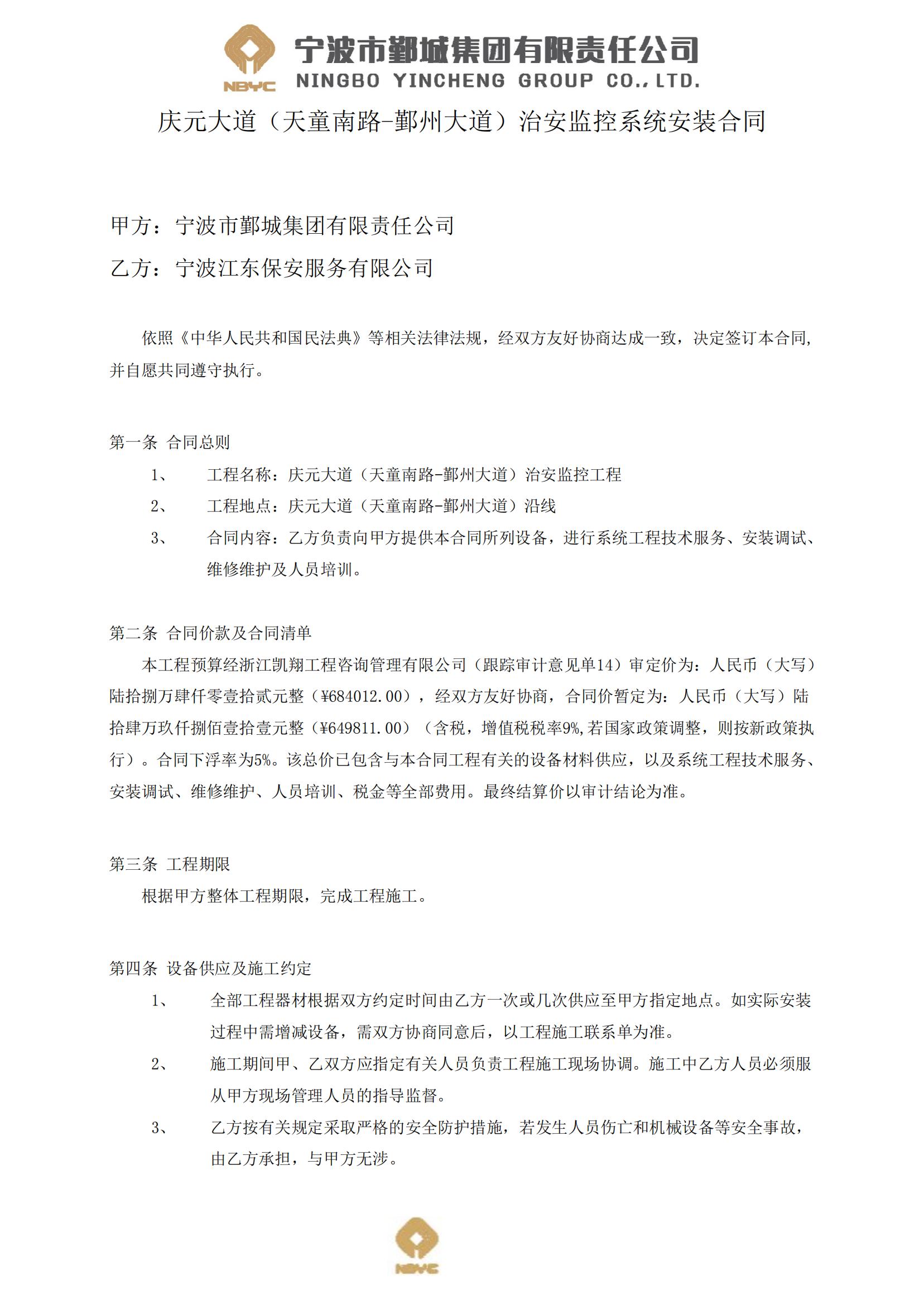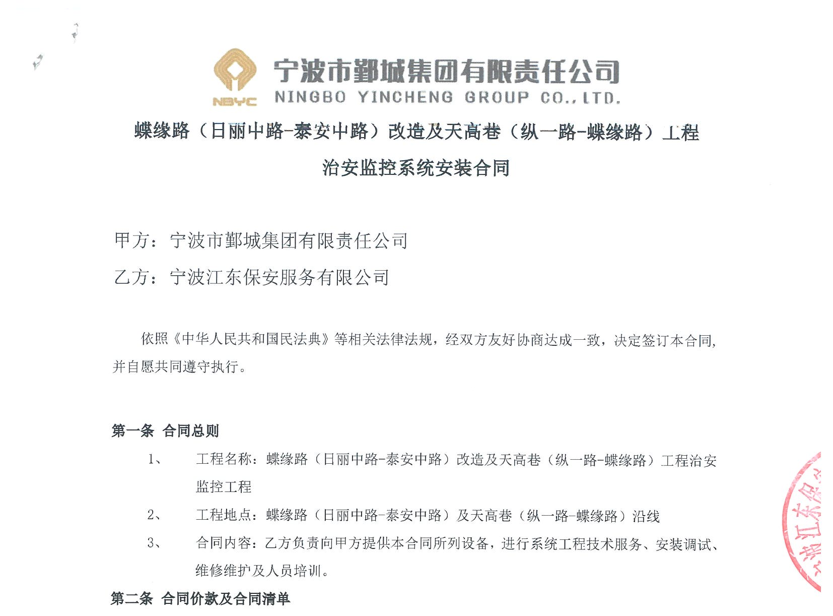 鄞州大道至福慶路(東錢(qián)湖路段)道路治安監(jiān)控安裝合同